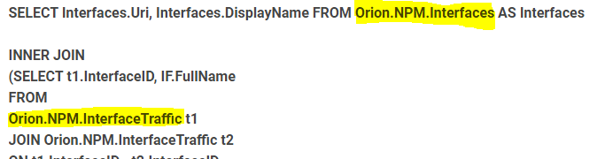 SELECT Interfaces.Uri, Interfaces.DisplayName FROM Orion.NPM.Interfaces AS Interfaces
