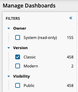 I can't seem to find my Classic Dashboards anywhere in the database. Am I just missing the table name? Why wouldn't these be stored in Orion.Dashboards.Instances? I have only two "Modern" Dashboards, and these show up when querying that table, but I can't find the Classic ones anywhere, and I have a ton of them.