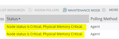 I have observed a message on several nodes stating "Node status is Critical, Physical Memory Critical," as illustrated in the snapshot below.