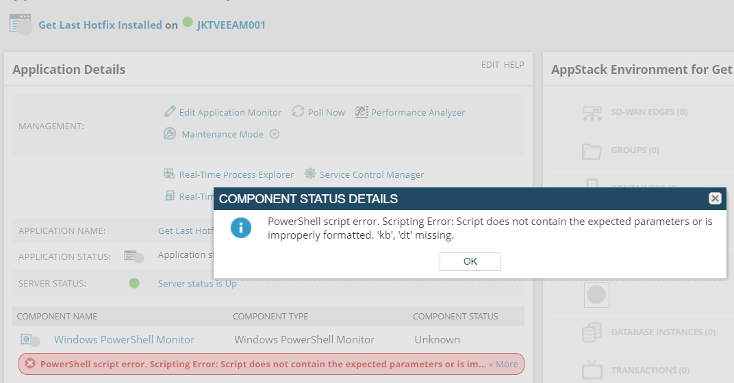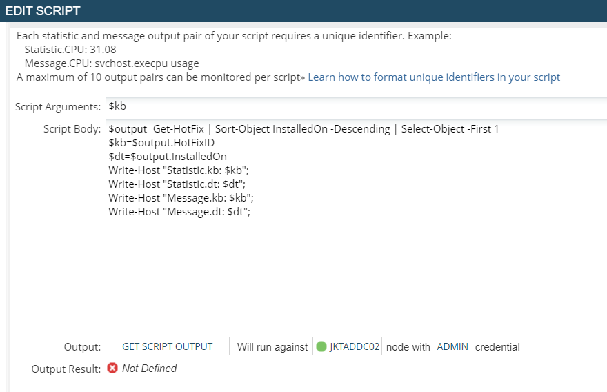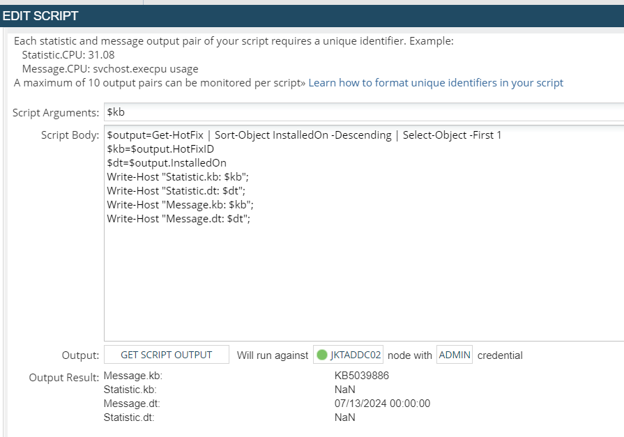 and if i assign to the host, i got error 'PowerShell script error. Scripting Error: Script does not contain the expected parameters or is improperly formatted. 'kb', 'dt' missing.'