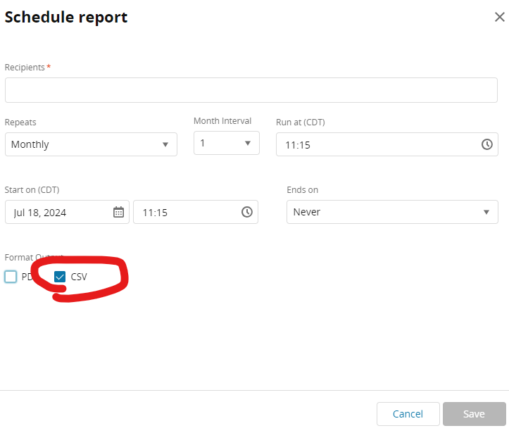 I have saved a view of incidents that are of interest to a department. I would like SolarWinds to export that view in a csv or excel file an email it to a recipient. How do I schedule that?