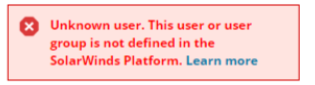 Solarwinds cannot use the contents of groups.link to authenticate users (this would make a great new feature). So if a user has over 150 group memberships, they won't be able to log in. They'll see the error message "Unknown user. This user or user group is not defined in the SolarWinds Platform":