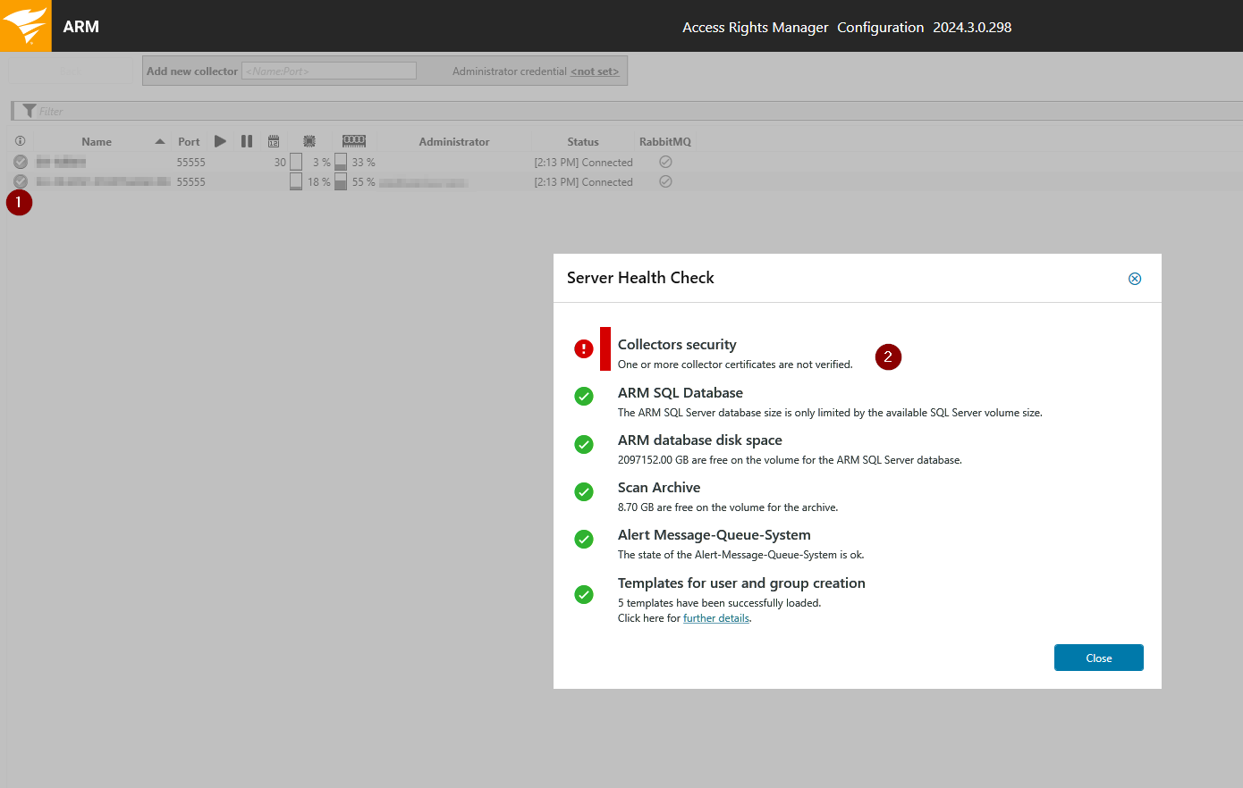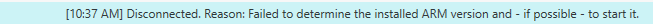 After the attempt the collector say: "Disconnected: Failed to determine the installed ARM version and - if possible- to start it"