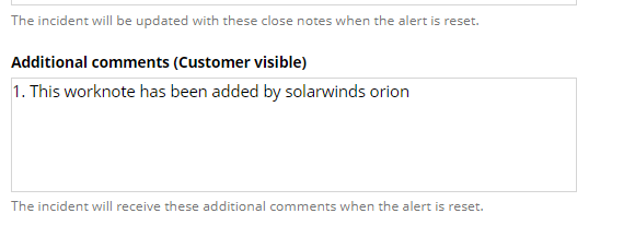 I dont want the comment which is in incident work notes "Alert reset - issue detected as resolved by SolarWinds Platform & Alert URL"