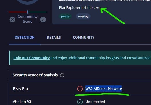 I just downloaded the SQL Plan Explorer Tool [www.solarwinds.com/.../plan-explorer (SolarWinds-PlanExplorer.exe)] to help analyze the performance of some SQL views. When I scan the EXE against VirusTotal, it's coming back with "W32.AIDetectMalware" from "Bkav Pro". I am also getting a "Unknown publisher" Microsoft Defender warning when I attempt to launch the exe. I'm guessing these are false positives, but I rarely see this in other programs. Anyone else here use this, or have experienced any issues with the program?