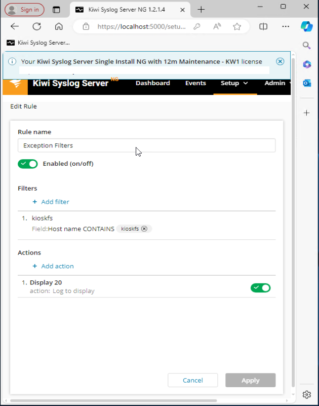 After using the old syslog application for years, I am find the NG version is nice, but I am having trouble configuring the rules.