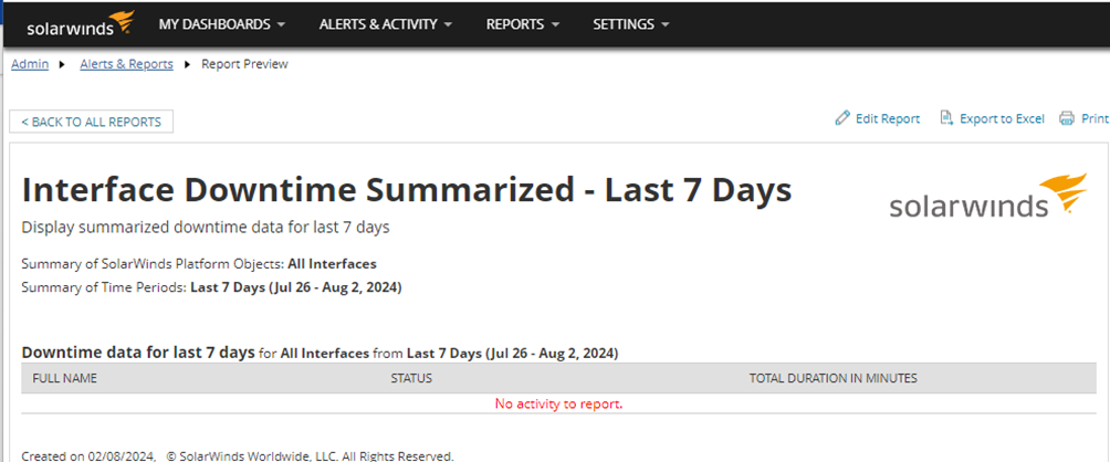 Upon review the SolarWinds Platform appears to have 40+ various 'Interface' Status reports.