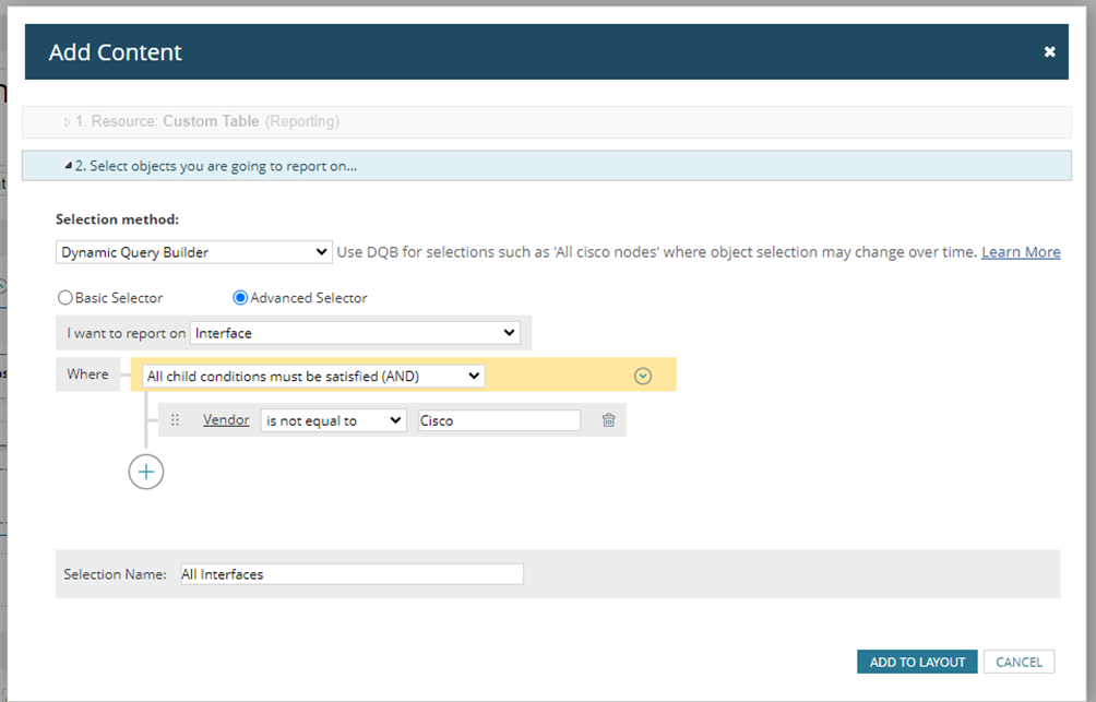Vendor | 'is not equal to' | 'Cisco' as shown within the screen shot.