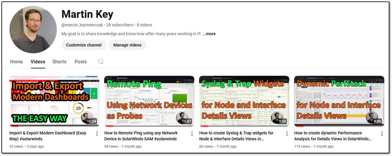New videos will be published at least once a week and I will be grateful for subscribing to the channel. It is worth highlighting that the channel is not associated with any company or SolarWinds partner.