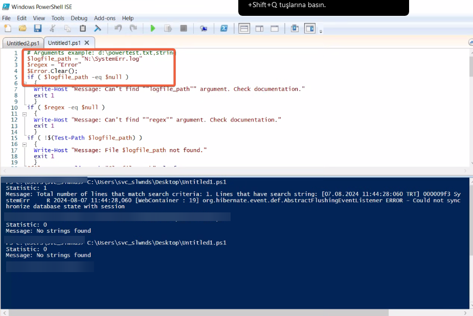 I am trying to monitor some log files. And I am using log parser (Powershell) template. For testing purpose I have created new log file under c:\ disk and i searched 'error' keyword and everything looks fine.