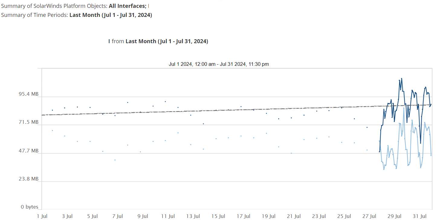 Greetings to the community, I am making a report of a monthly interface report for the month of July for example, but the graph shows me the following, Why does it show me activity from the last few days???
