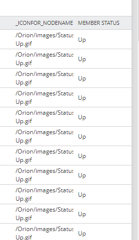First THWACK post, so take it easy on me. I'm trying to get a SWQL query to include the Group Container status icons in the table. I've reviewed other posts and have been able to widdle the query down to a couple of options but I can't get the gif image to show correctly for Option #1 and I can't get the icon color to show on Option #2. I'm open to other alternatives too.