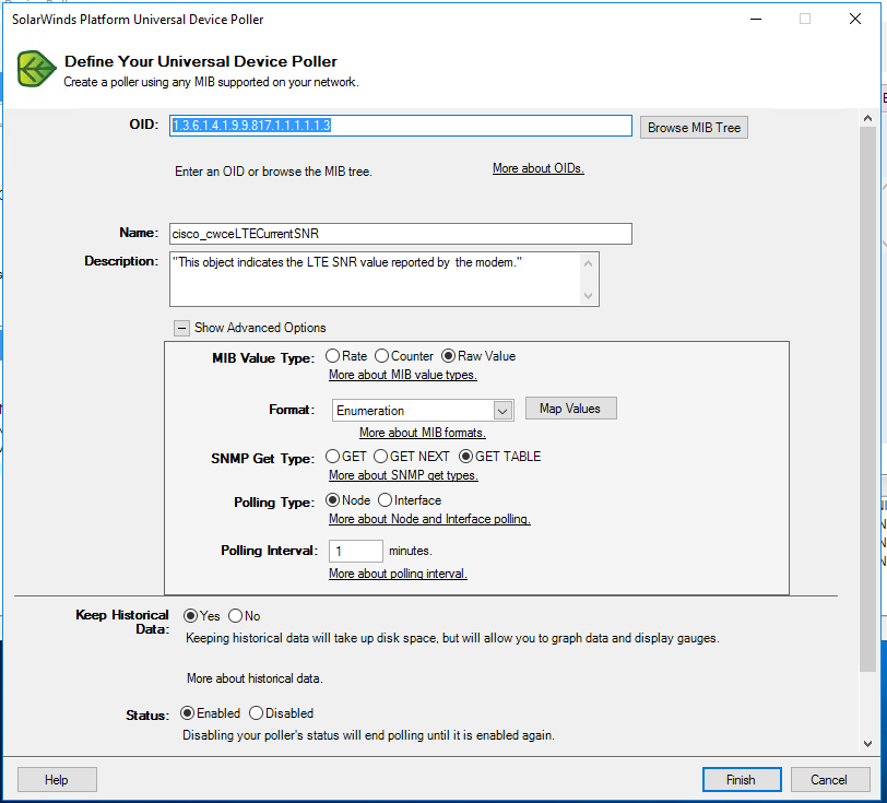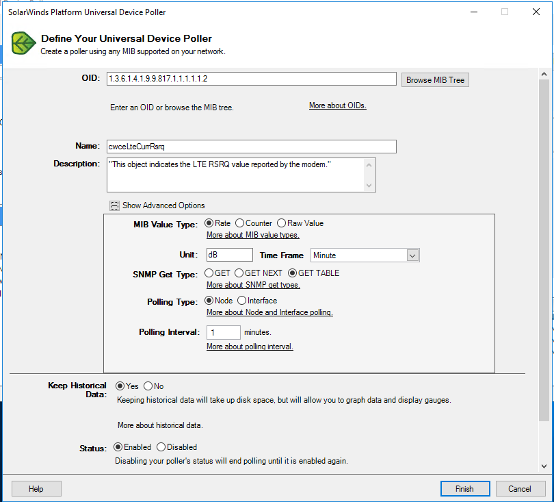 Cisco Cellular Monitoring - RSRP/RSRQ/SINR/SNR - I've added multiple UnDP's for Cellular monitoring and my router's 5G/4GLTE Cellular output but only my RSRP output matches b/t my router and Solarwinds UnDP... RSRQ/SINR/SNR provide outputs that do not match.