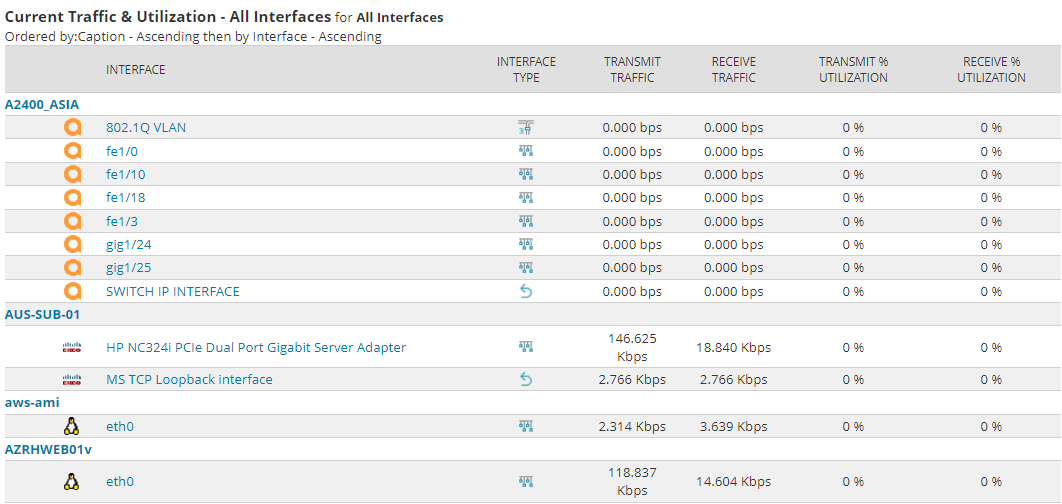 Creating a custom report showing interface utilization average bps in and out with a header for each link in the report