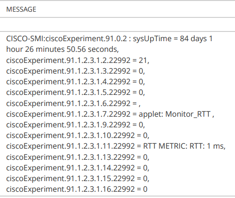 Example: I only want to see all the 'sysUptime' data, the Monitor_RTT data and RTT METRIC:RTT: 1 ms value.