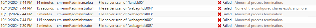 I'm testing ARM. I started installation and configuration. AD scan works properly. File server scan at a few file servers looks working, but is terminated abnormally. Looke working I meen tat I see patch analyzed and file counting is rising, so access to resources should work properly. Scan is not completed and I don't see file resources in Resource tab, also I can not analyze rights permisions to file resources. I use only full client.