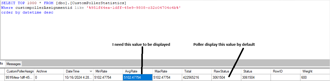 I already have a custom poller which is displaying default total value as shown in the screenshot but I need AvgRate value which is already available in DB.