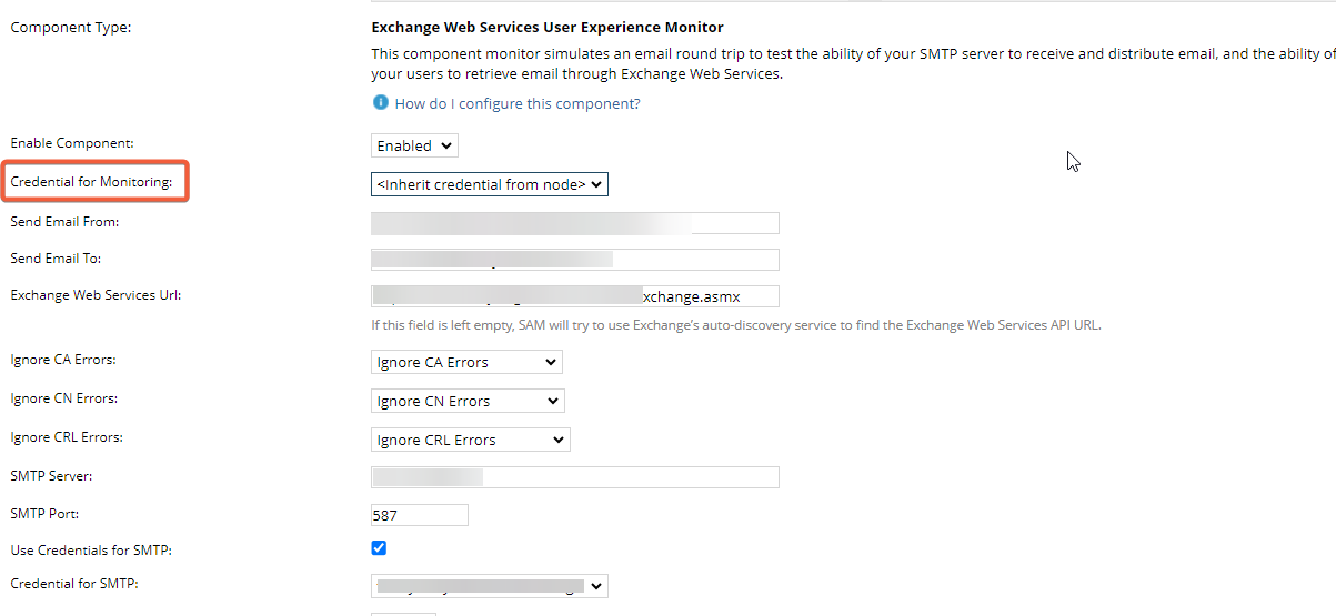 I am trying to run 'Exchange User Experience Monitor' Component in sam. But I have faced some problems.