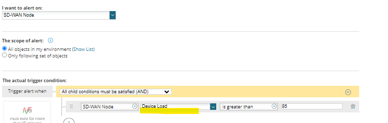 can someone help me understand what parameters does SDWAN-Overload out of the box alert is considering to say a SDWAN is overloaded. while checking the alert is giving device load.