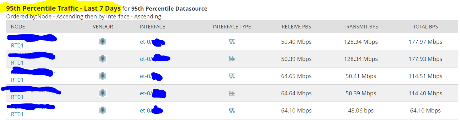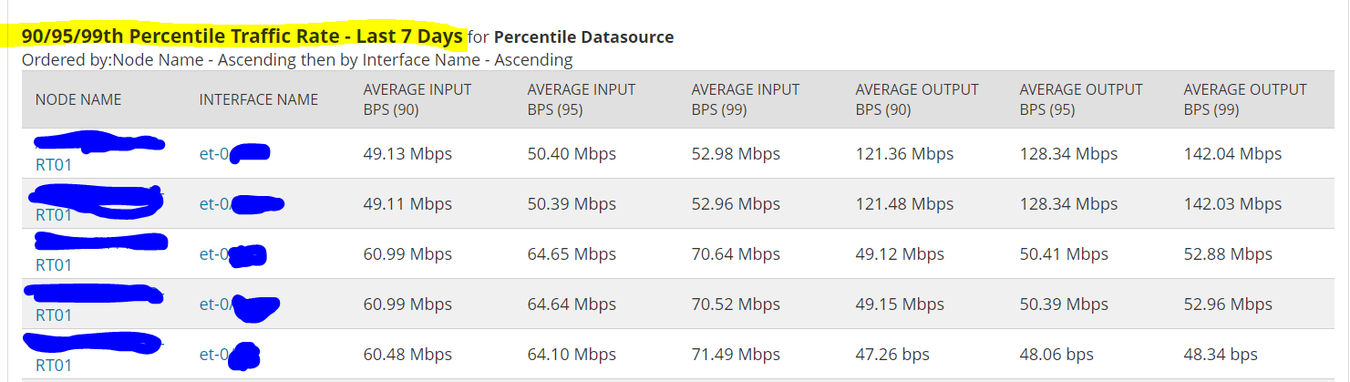 Snapshot for 90/95/99th Percentile Traffic Rate - Last 7 Days report.