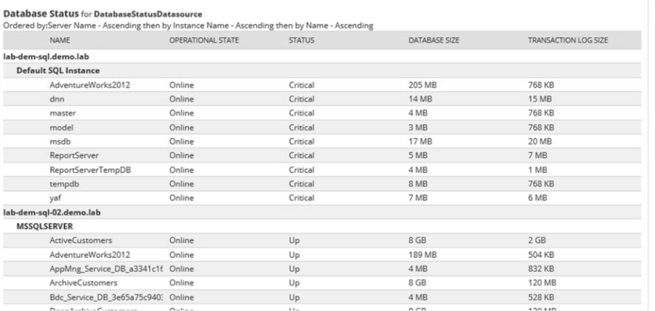 I need like this snapshot to show in modern dashboard table widget with abnormal growth check in transactional logs size and database sizes increases.