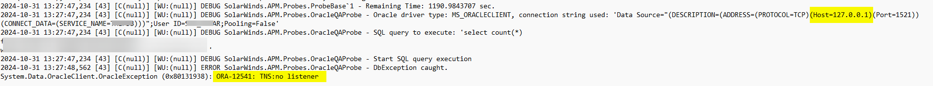 I took the application to debug mode and examined it a little and saw that it uses 127.0.0.0.1, that is, localhost as host. In other words, solarwinds does not use the tnsnames.ora connection file that I actually created. And it tries to access the db through the server I assigned the application. (I assigned the application to the main pooling engine.) How can I prevent this? How can I ensure that solarwinds uses the tnsnames.ora file?