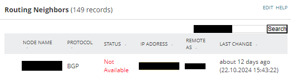 I have found in list of BGP neighbors [Routing neighbors] on our device neighbor, which don`t exists anymore and yet it is still visible as active neighbor with status "Not Available" and the object is visible as "deleted (grey color)".
