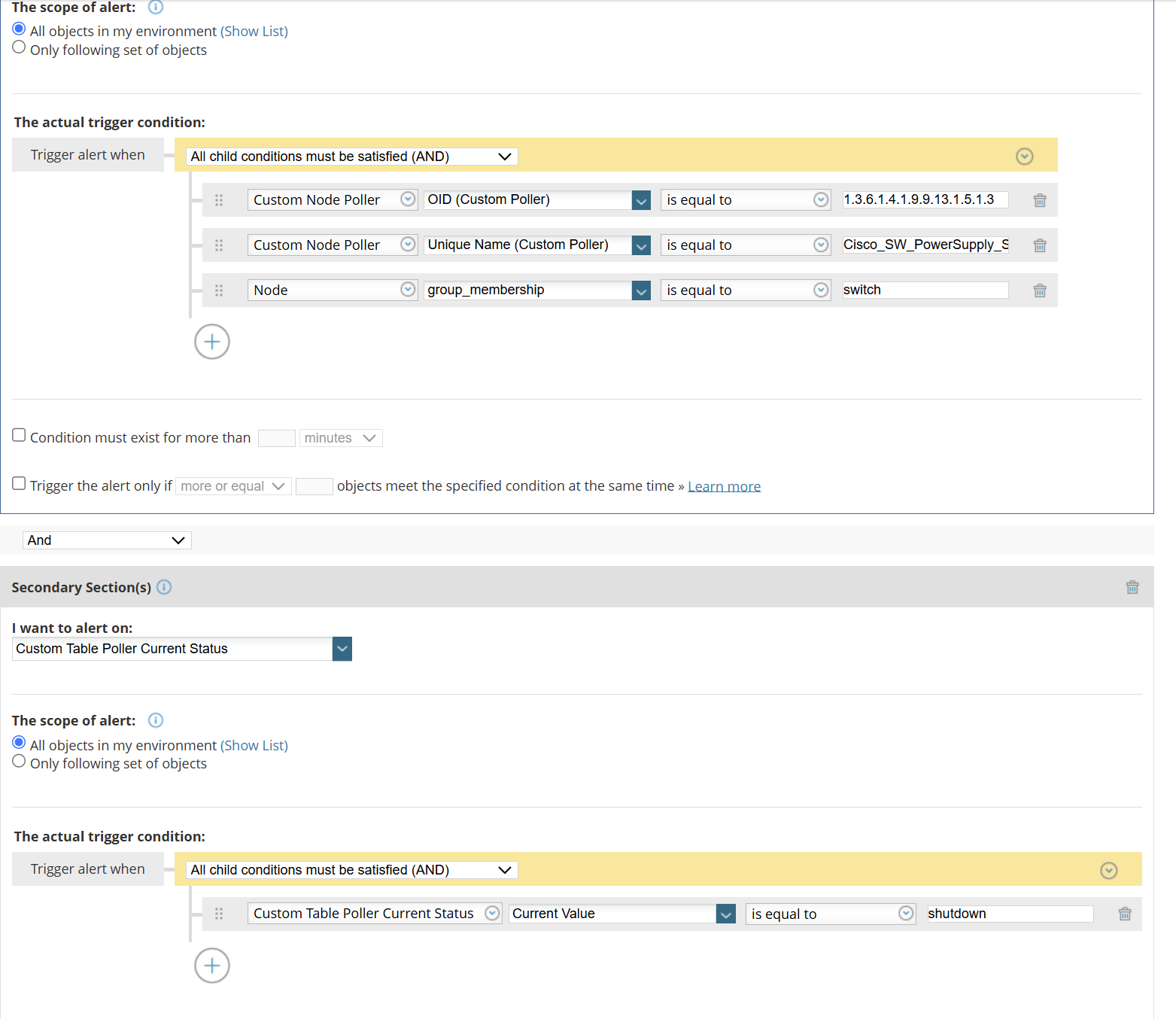 The issue when power supply status changes to shutdown on one switch, alert is sent for each switch with this UnDP assigned, I'm getting individual
