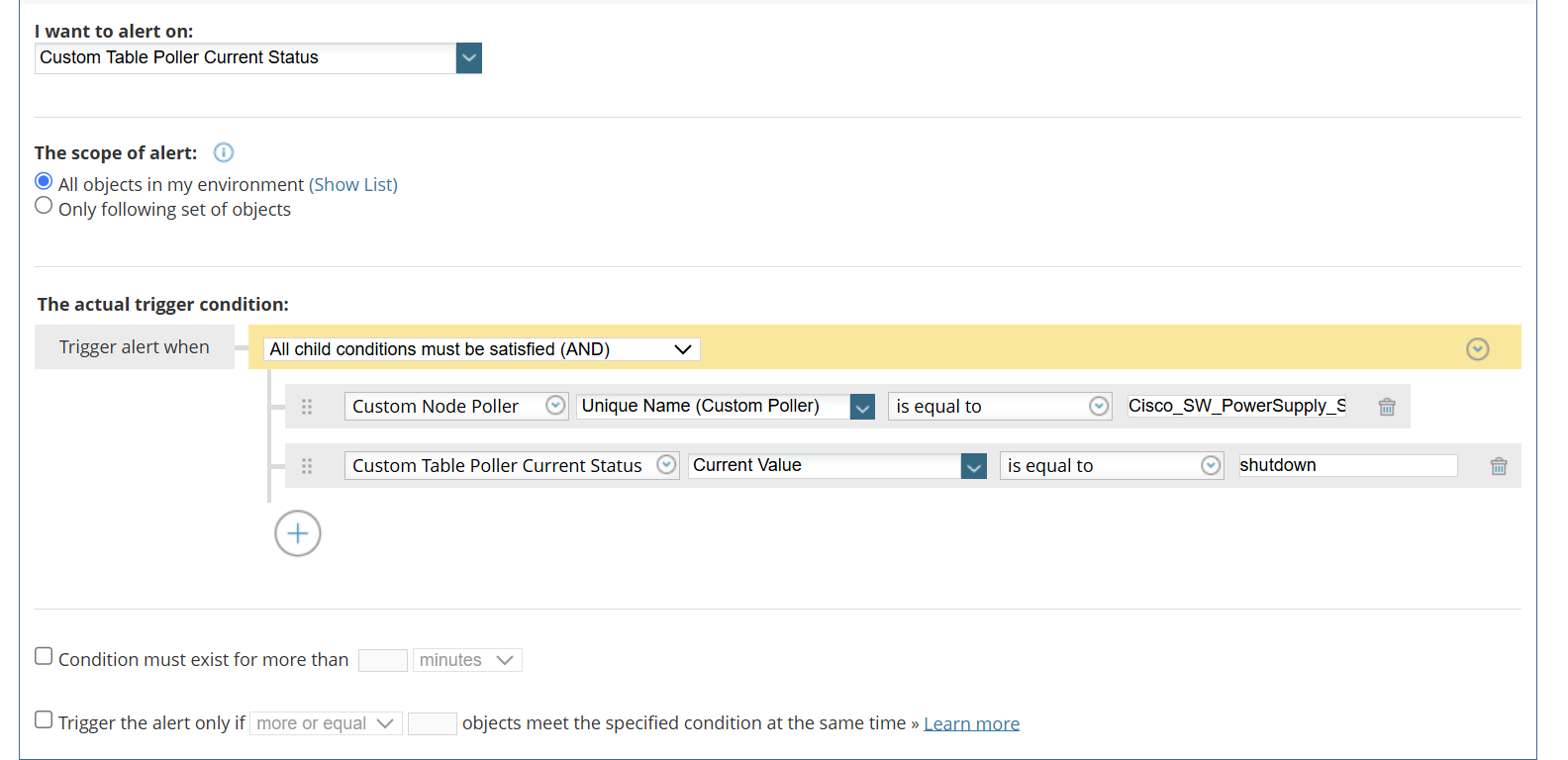 I'm using advanced condition to have Node, Custom Puller and Custom Table Puller options for condition and for alerting.