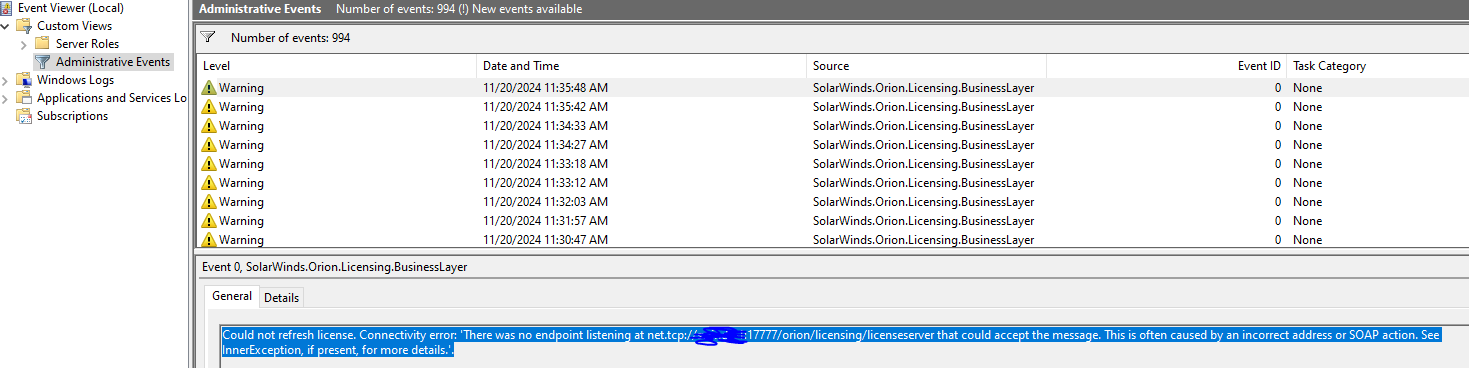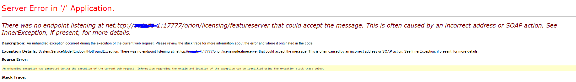 Having issues that appear to be licensing related. This is a new application server (same name/IP) with existing Database. Getting this error when trying to open website: