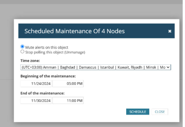 1- once we make a Scheduled Maintenance for a period of time, how to check it later if the task completed or if I wanted to edit something because once I click Schedule option I got a massage that state it's completed but no way to check it.