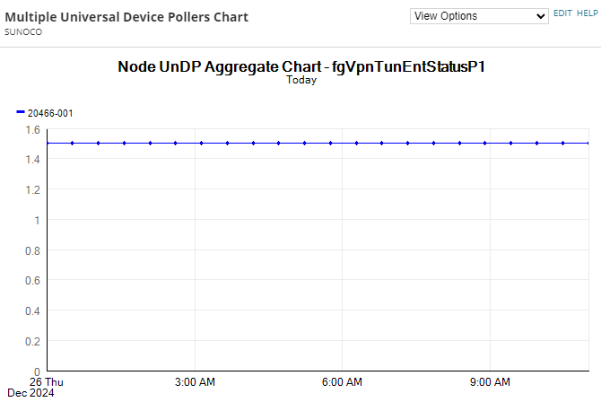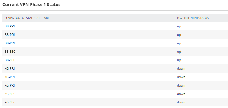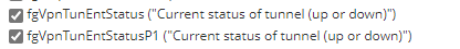 We have set up UNpD with the new pollers for Fortinet 7.0+ to detect tunnels down and works great. also displays the below widget BUT trying to create this widget on Iframe for an application server and cannot find this specific widgit. it shows up like the 2nd display below when assigning the universal pollers to that widget. help. Trying to correct the bottom to look like the top but do not get the options for the 'Current VPN Phase 1 or 2 status'.