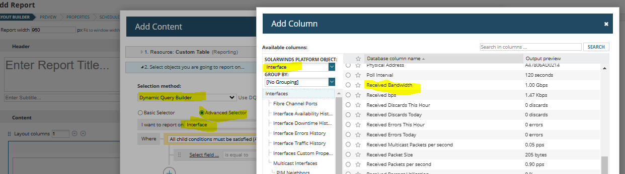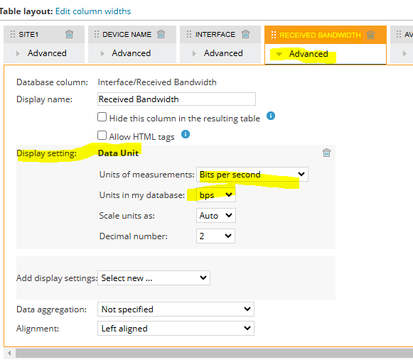I would like to inquire about something regarding the report mentioned below. I have created a report for the team, but now they are requesting that I add a new column to display the interface bandwidth speed (e.g., 700, 500, or 300 Mbps).