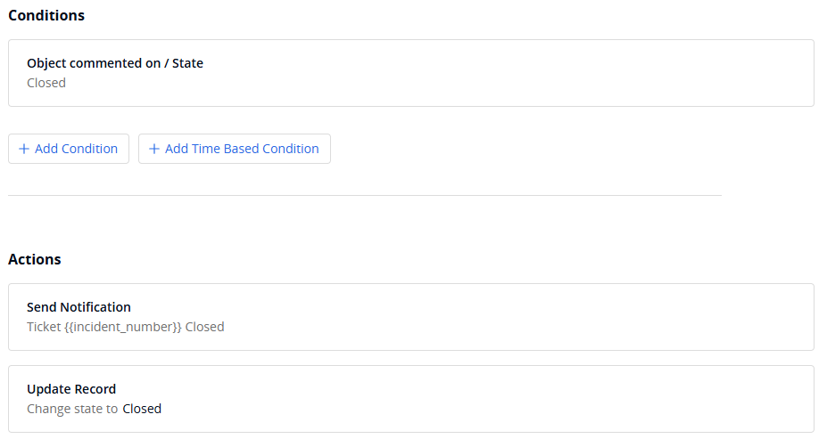 - Create an automation rule that says if a closed ticket is commented on, send a notification that the ticket is closed, and change the status to closed.