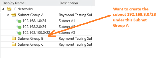 Is there a way to create a subnet in the target Group directly? or how to reposition that subnet from the "IP Networks" group to the "Subnet Group A" using the API approach?