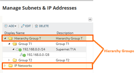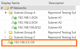Group View in the Manage Subnets & IP Addresses page (localhost/.../subnets.aspx) (after subnet creation)