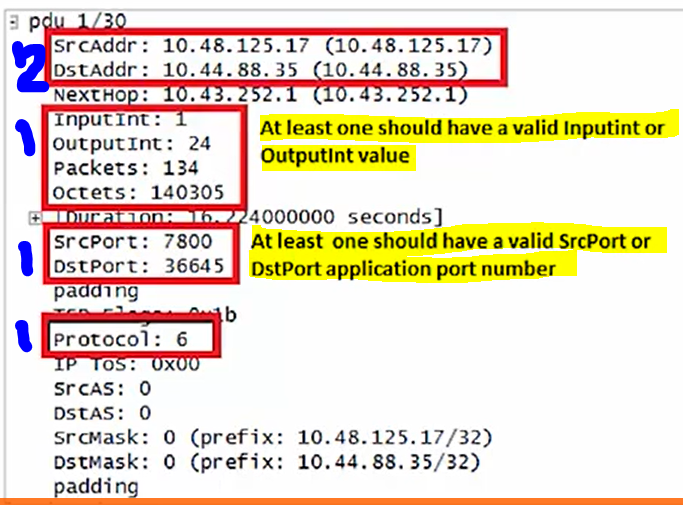 I am reaching out to cross-verify and seek clarity on the NTA Flow Records compulsory fields mentioned below. Are timestamp fields also required when configuring flow records on a device? Could you please provide an example to illustrate where I can find this timestamp field?