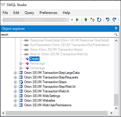 To find out if it exists you can use SWQL studio to see if there is a related verb for WPM (called SEUM in the database or SWIS tables). The verbs have pink icons. However I looked under Orion.SEUM.Transactions table and do not see an option to invoke test. Only create, remanage, manage.