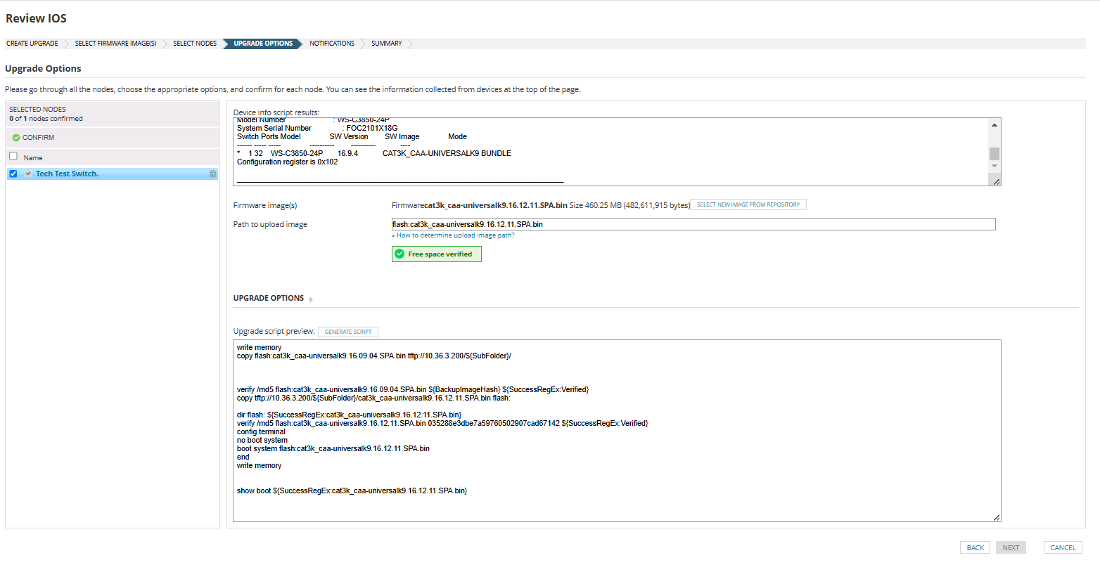 Please help me develop this script file? Our goal is to use in NCM to upgrade a 3850 Switches.