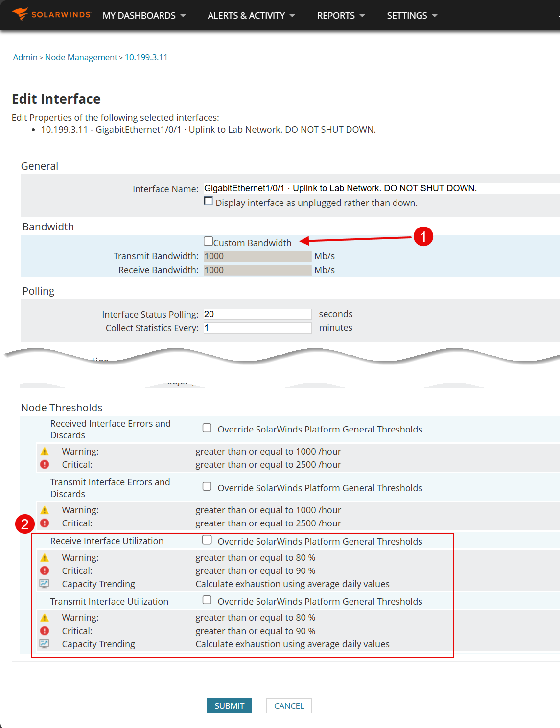 I need an alert for MPLS link saturation. For example, I have a 2GB interface that my IPS gives me and I want to know if it will alert me when I exceed 75% of the 2GB usage. What alert could I get for what I need? Where do I set those 2GB that the IPS is giving me. I hope I have expressed myself well.