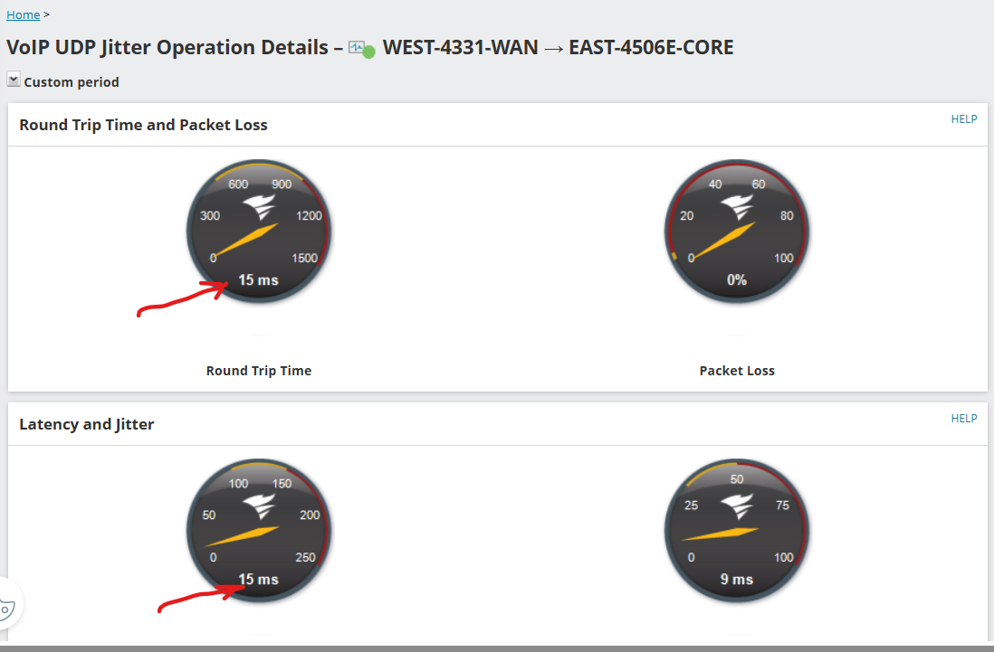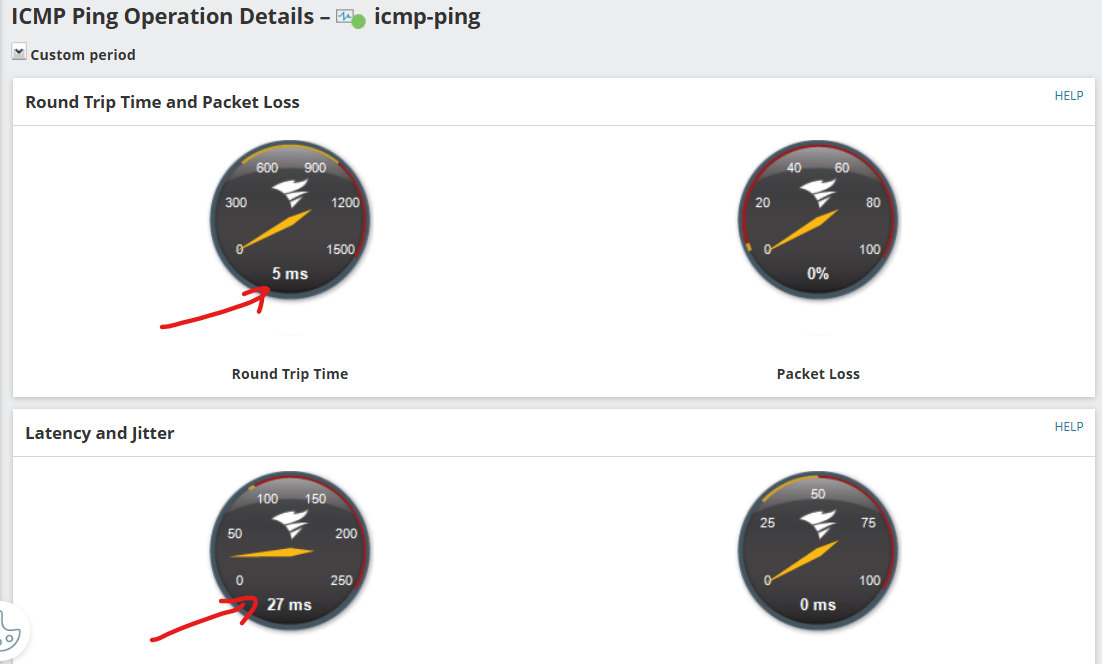 See some IP SLA screenshots from the HCO demo site - the RTT and Latency values are equal both 15 ms. This has been observed not just in the demo website but also in live production environments.