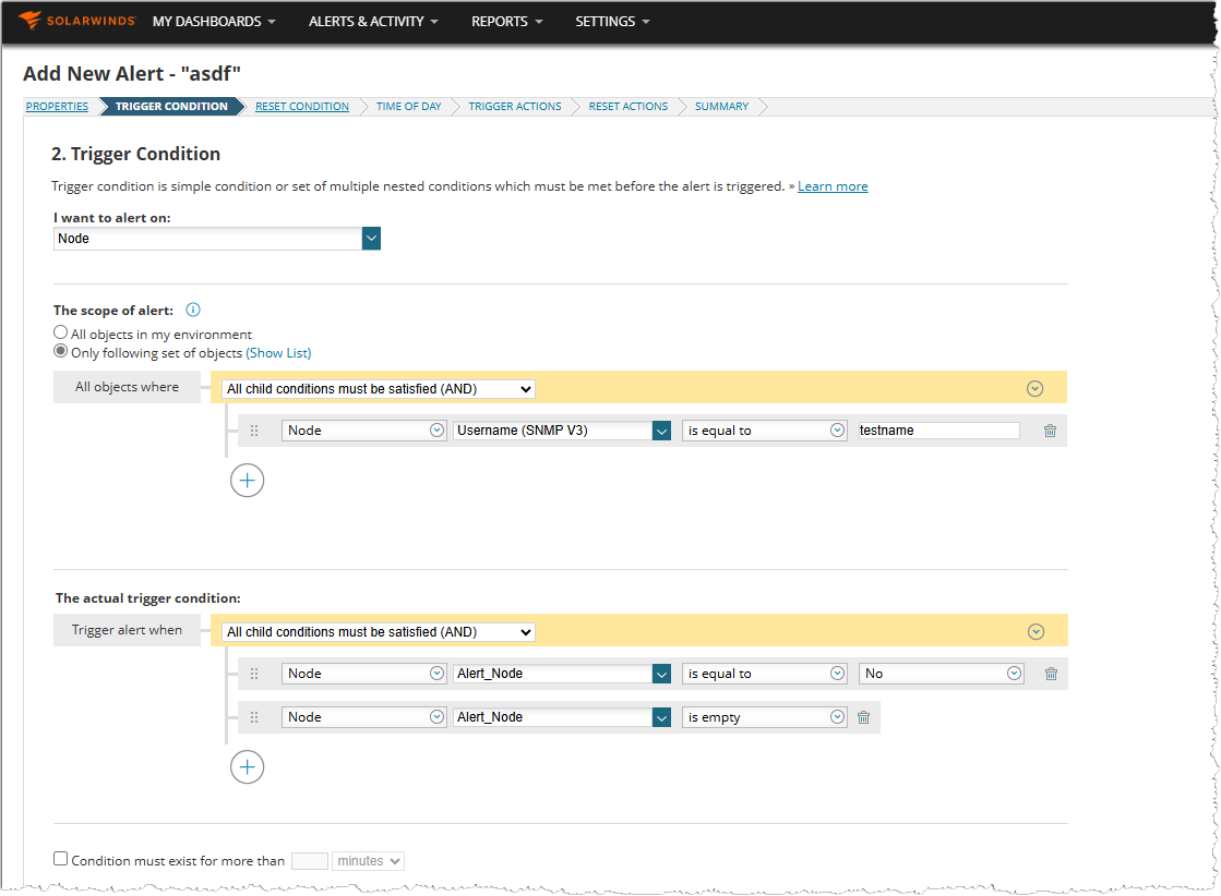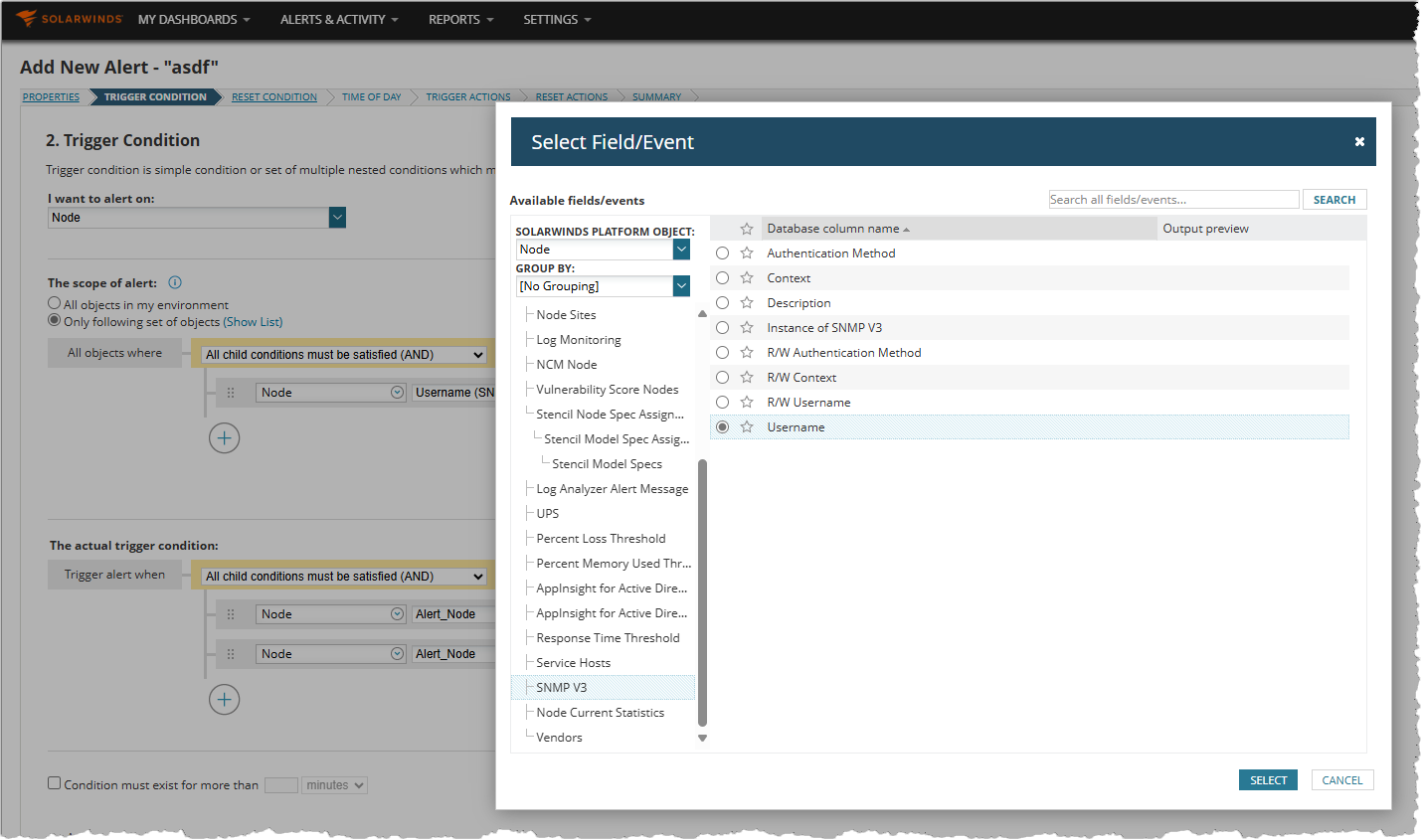 What I would like to do is use an alert for automation to set a CP of "UsingRetiredSNMPv3" to yes for any node that is using one of the old retired creds AND is using SNMPv3 for polling (to just quickly exclude any v2 nodes out there)