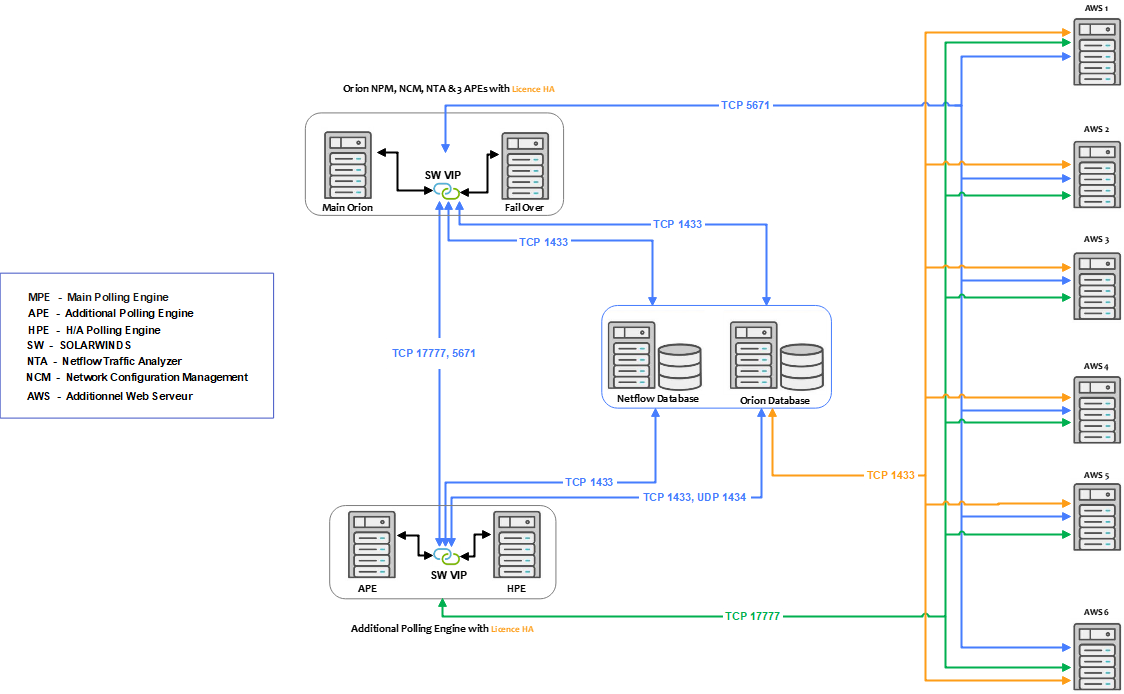I am evaluating a possible scenario with multiple SolarWinds AWS instances for one NPM installation, as you can see in the diagram below: