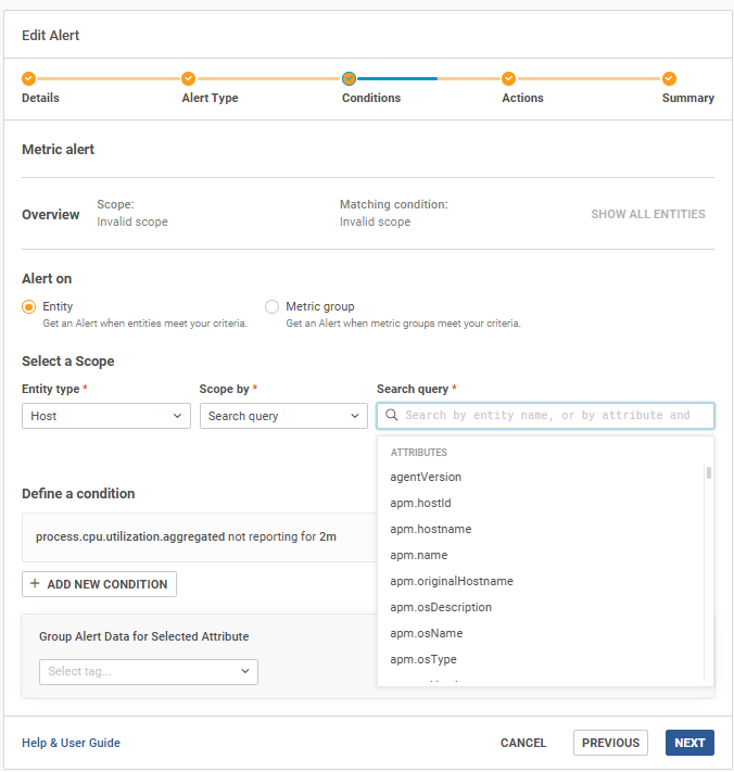 Is there a way to explore all the "Search Queries" tags and values that can be used in creating a scope for a group (or an alert)?