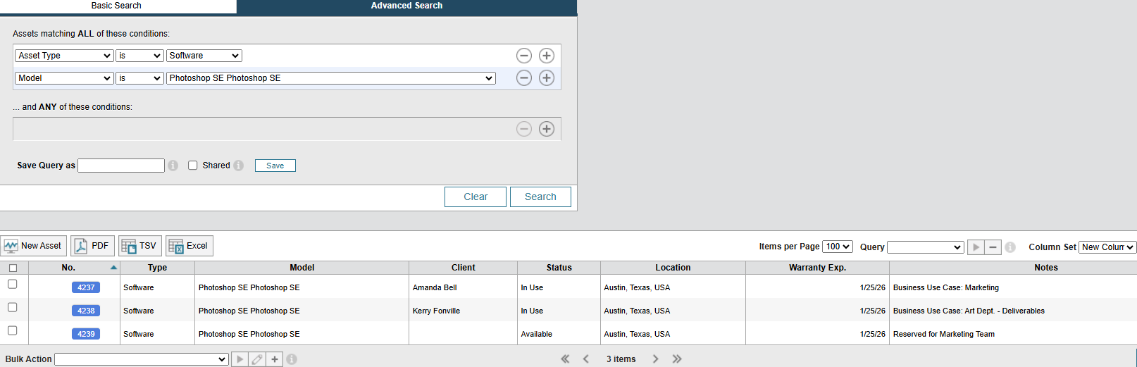 That's the "Asset Reservation" screen showing an "Apple USB SuperDrive" attached to the reservation - wouldn't it at least have been better to setup the screen where it shows a software title? So this screenshot to me is completely laughable because even if it is "reservations" that you can use to keep track of software licensing (e.g. track who has "reserved" a software license) this feature is neither: