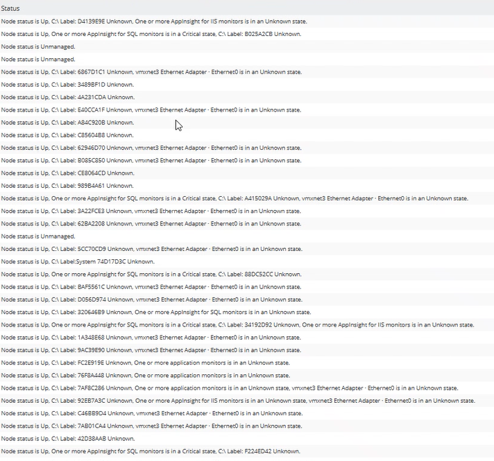 I’m facing an issue with my SolarWinds platform (version 2024.4.1), where most nodes' C drive status appears as "unknown.". I noticed that all of the devices are localized to one APE. The issue was ok when I changed the Polling Engine to another one. But again, the problem appeared when changing the polling engine to the old one