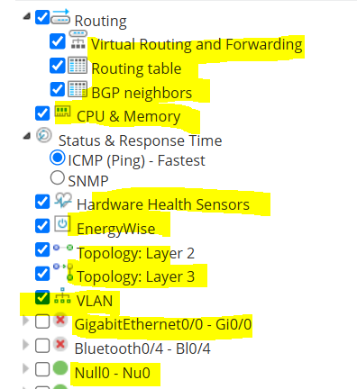 I am exploring node list resource options and have found different types of metrics based on various device types, as shown in the screenshots below.
