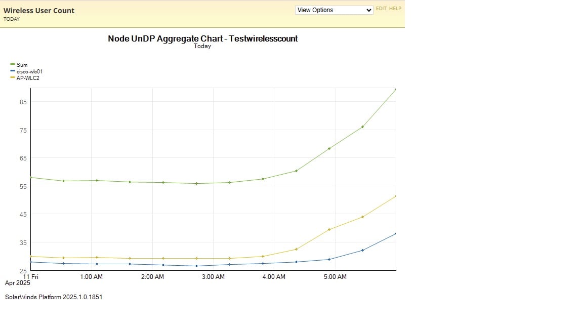The problem is the chart that I have created is only looking at a single value and is therefore only showing the number of clients connected to a single SSID on both of my controllers.