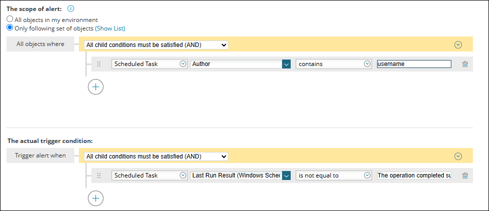 I wanted to monitor just specific Scheduled Tasks that are manually created by the users/admins but not the built-in ones.