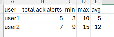 im trying to make this compile the each user with the avg (minutes until acknowledged) to produce this